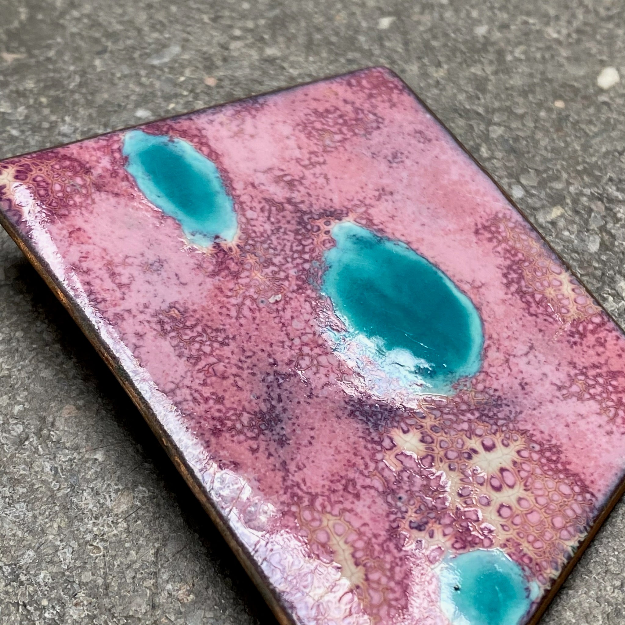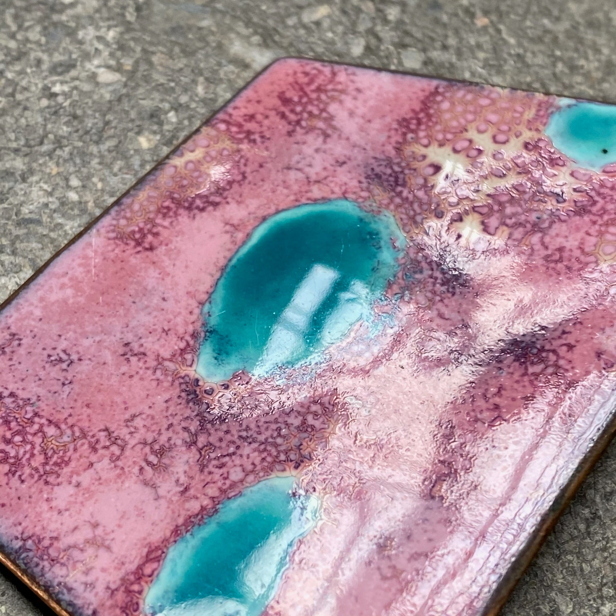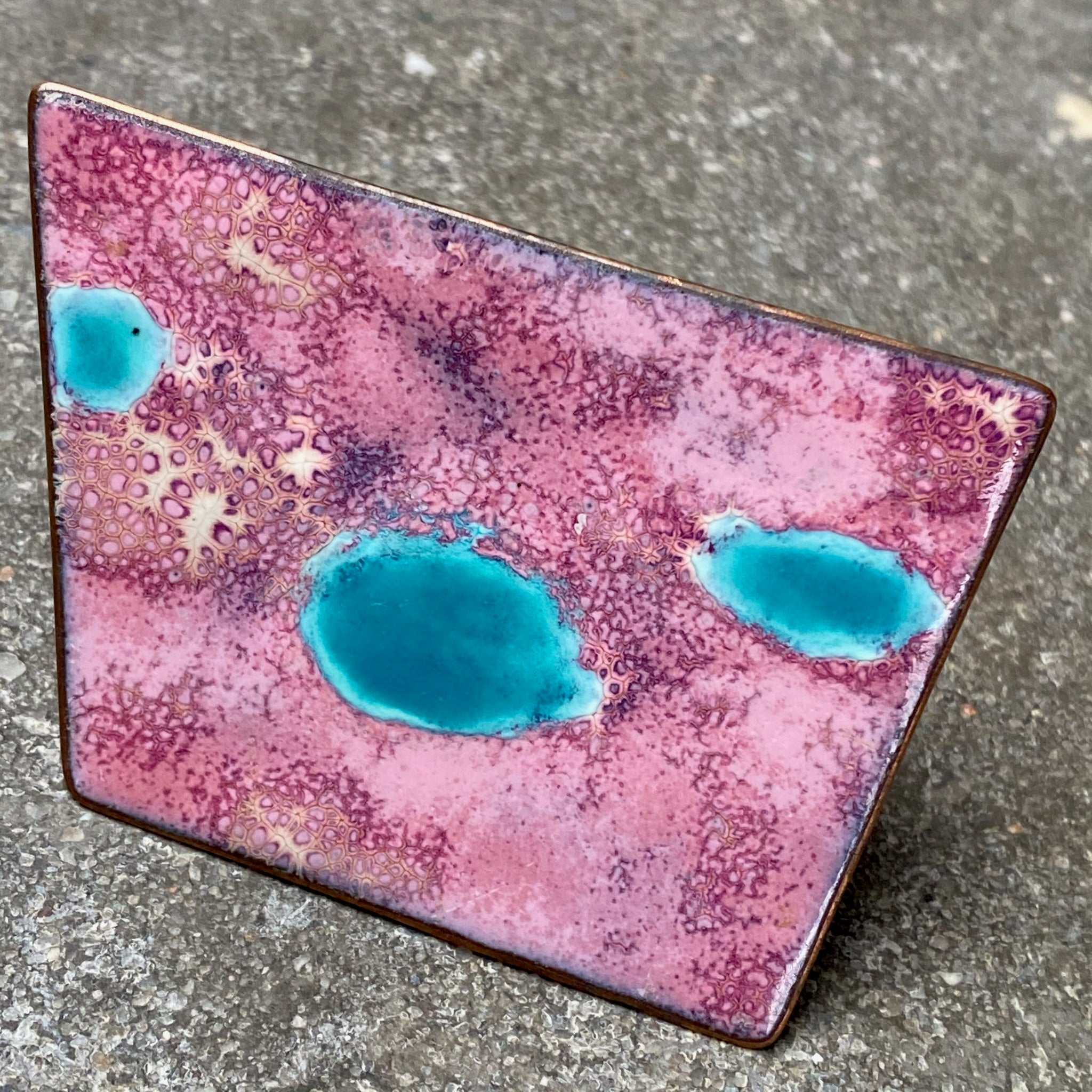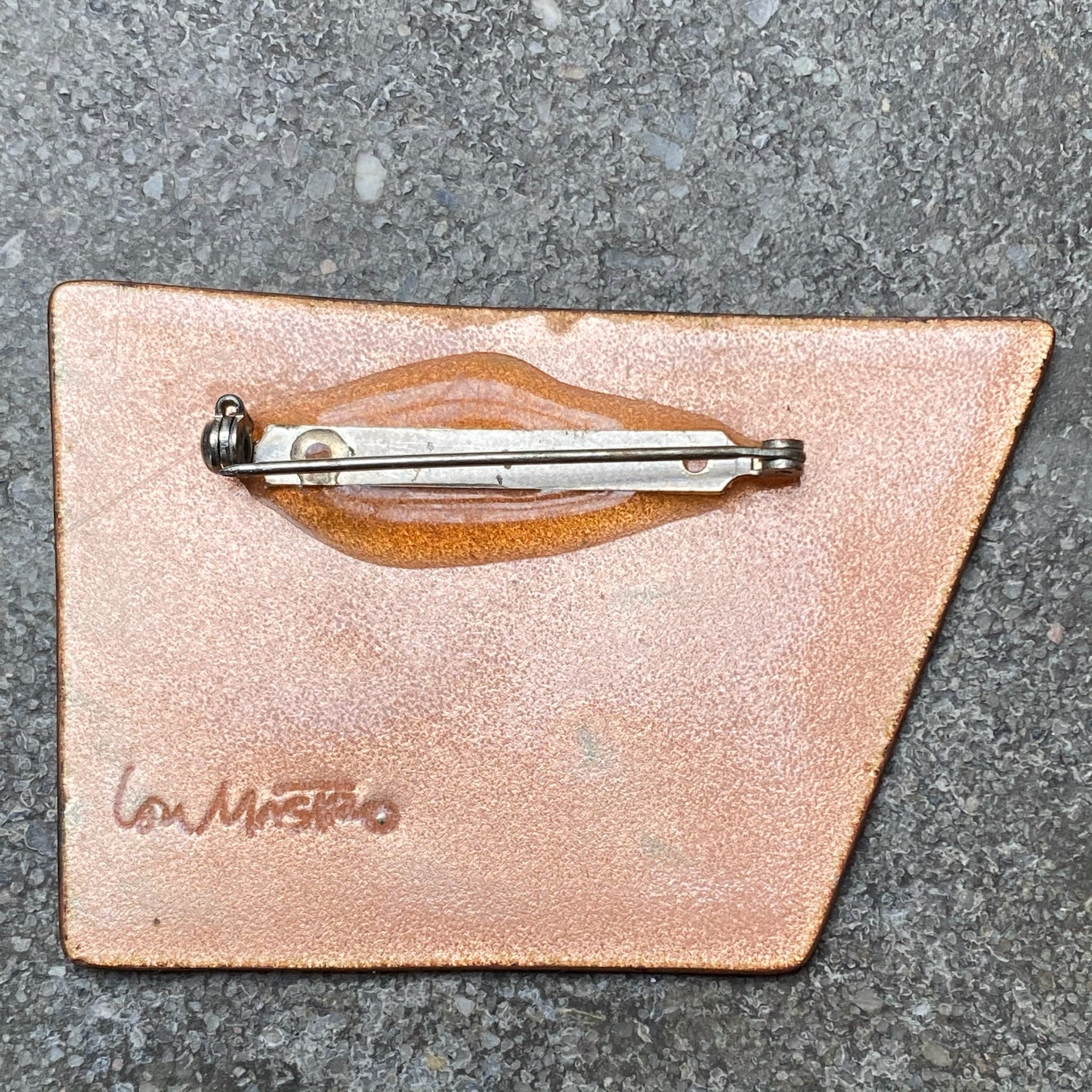 RARE SIGNED Lou Mastro MCM artist Large Enamel, Copper, Watercolor Effect Brooch