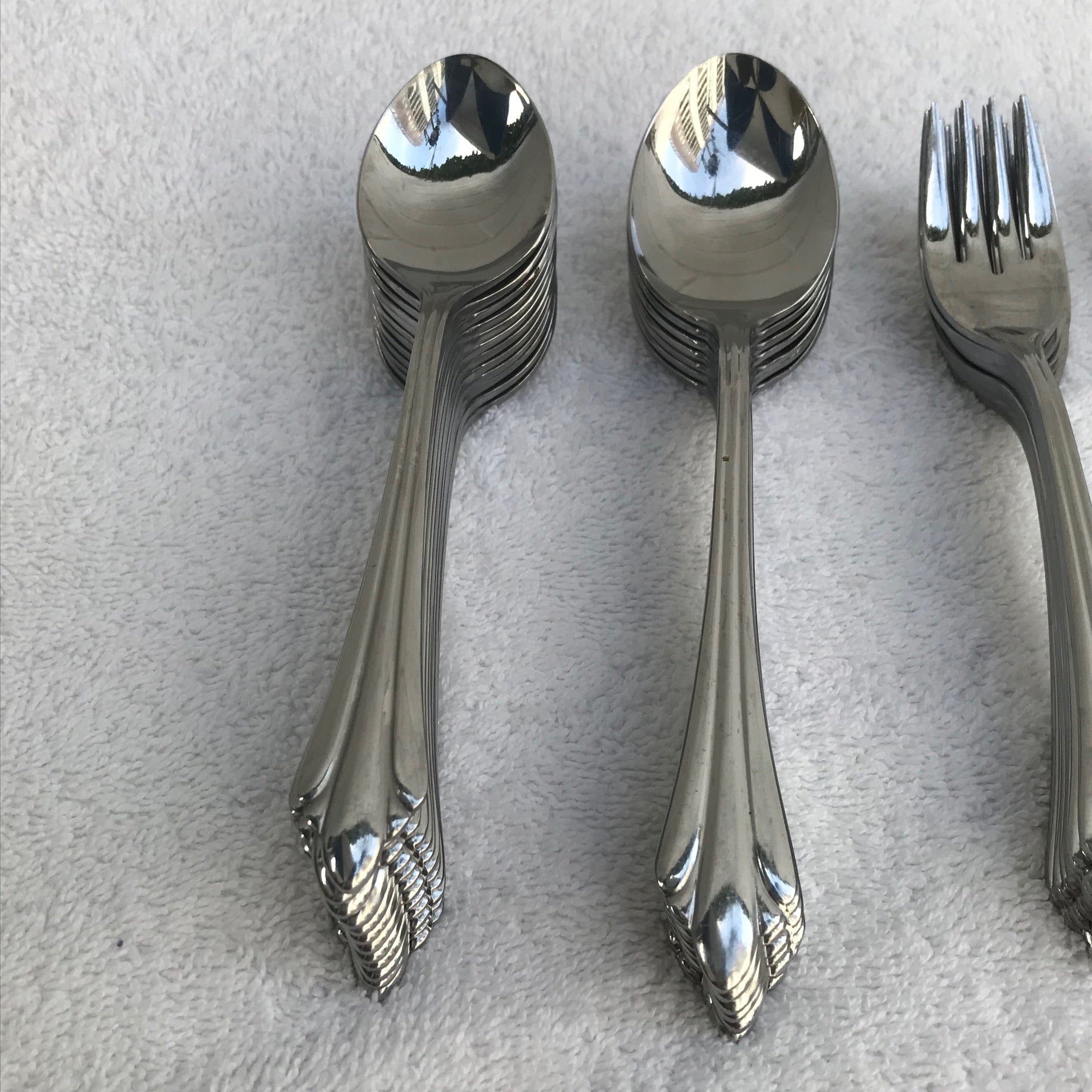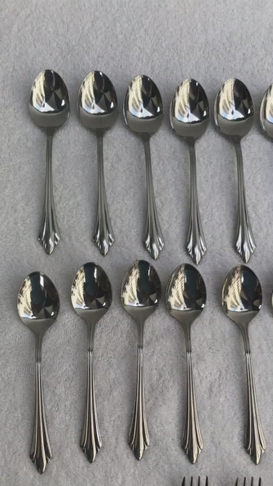 Here is large vintage set of Reed & Barton Rebacraft SARAJEVO Select Stainless Flatware in great condition. Japan. These stored for special occasion from an estate of one person, reason they are in great condition. Classic timeless pattern. They have washed / cleaned via dishwasher in intense heat. Selling cheap :) More dinner / flatware will be posted.