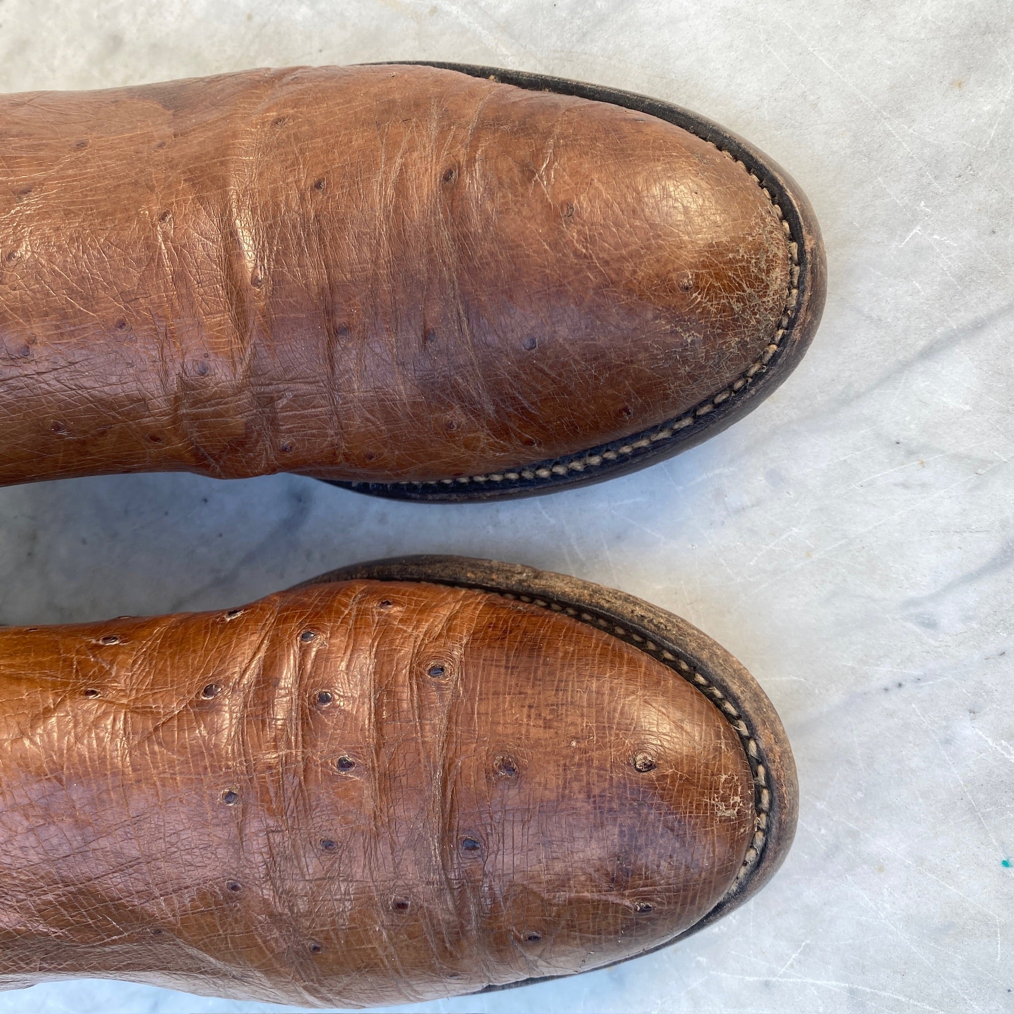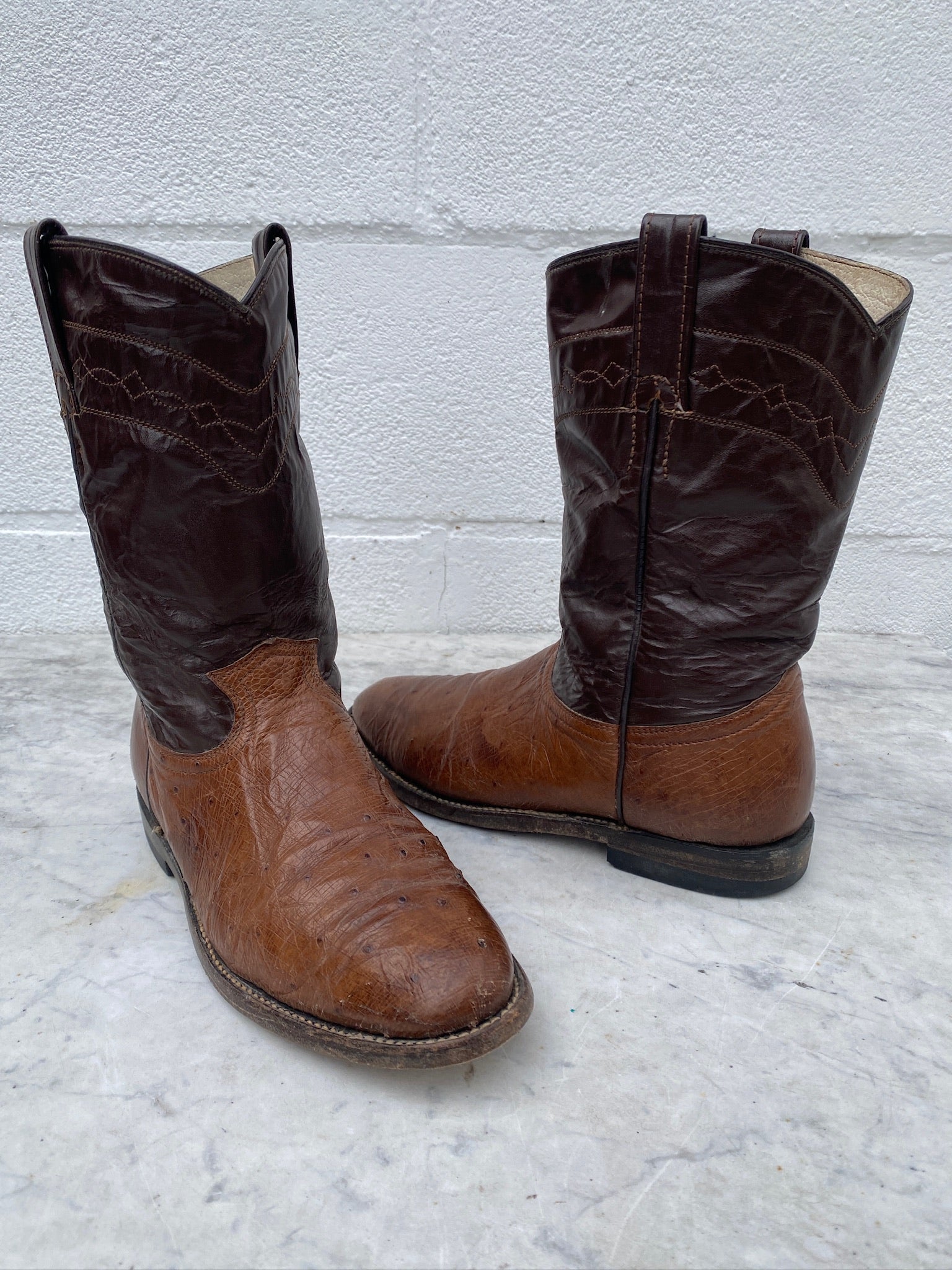 Vintage Mens Roper Style Two tone brown Ostrich / Leather Cowboy boots by Cowtown Boots / Made in Mexico FREE SHIPPING