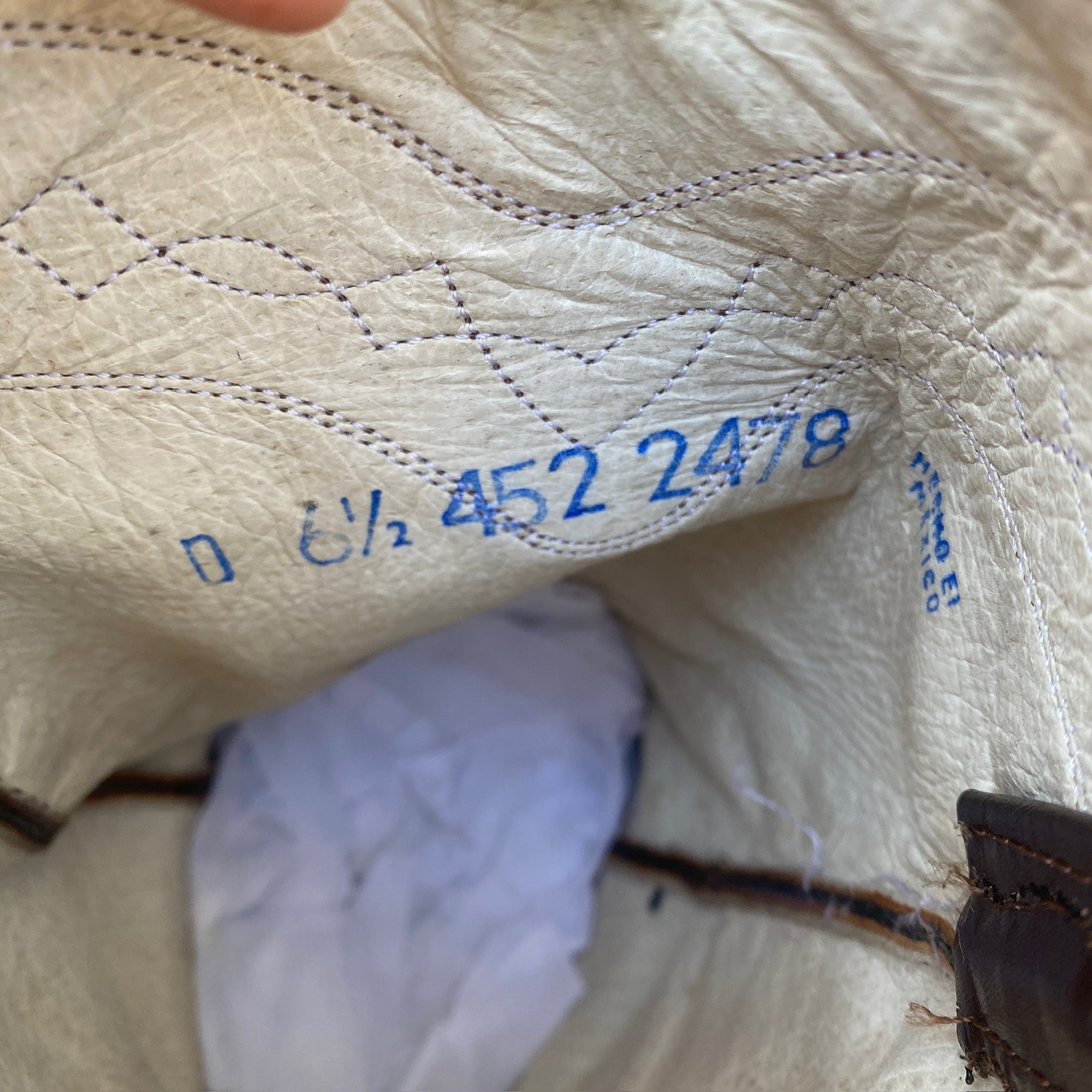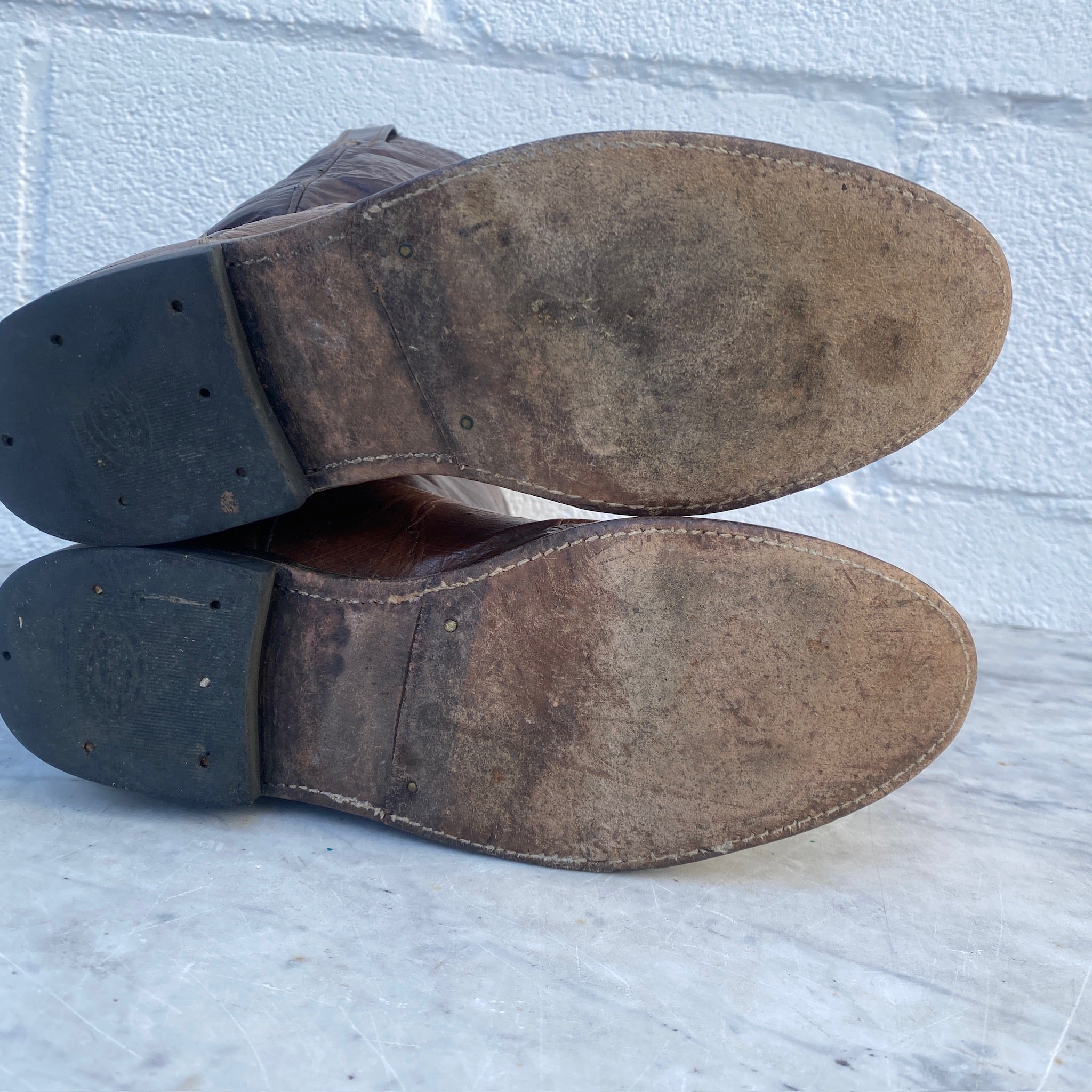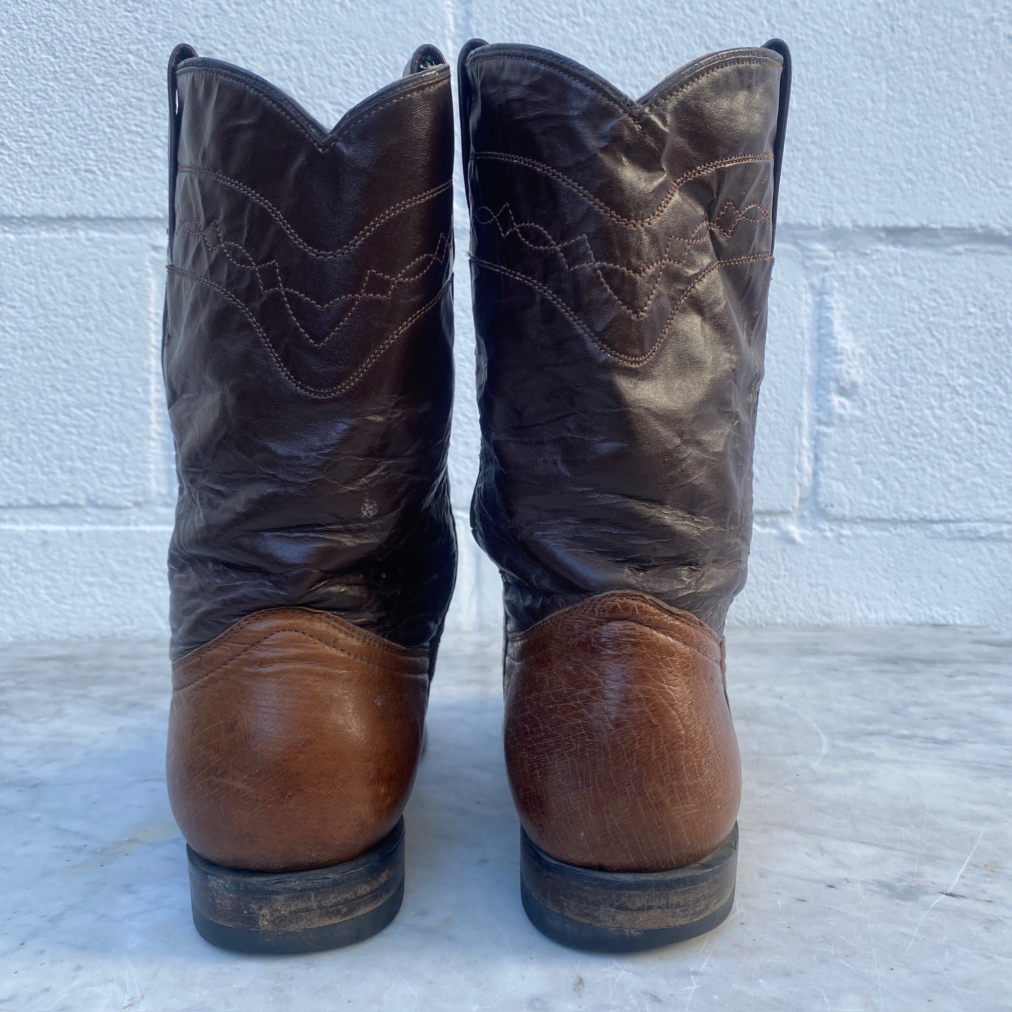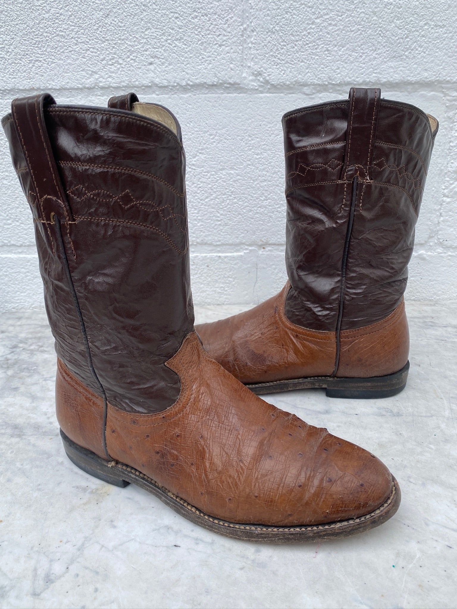 Vintage Mens 6.5 D Roper Style Two tone brown Ostrich / Leather Cowboy boots by Cowtown Boots / Made in Mexico FREE SHIPPING