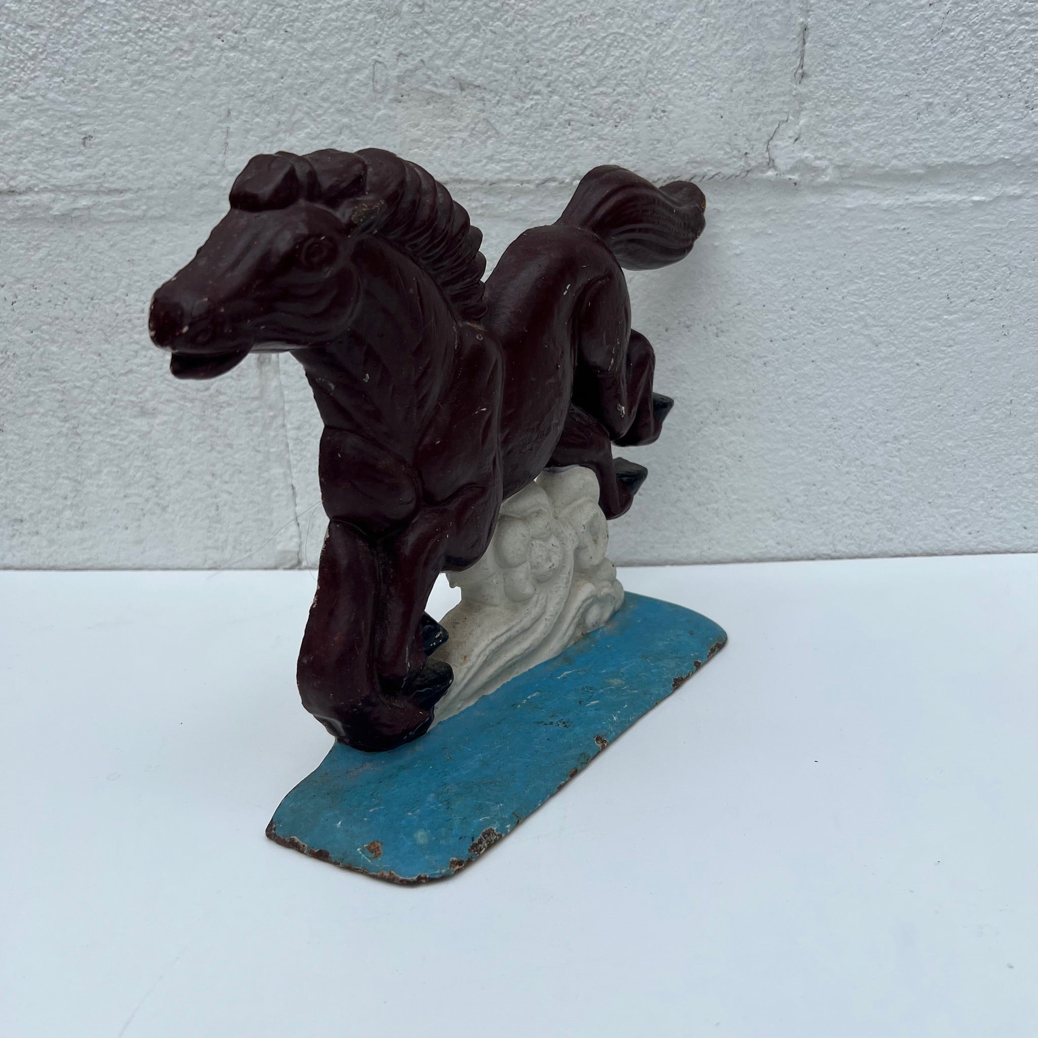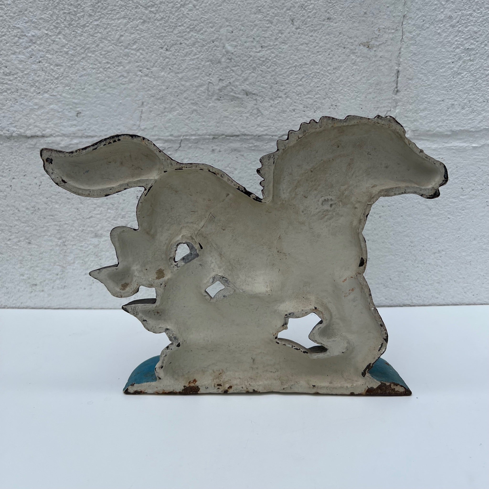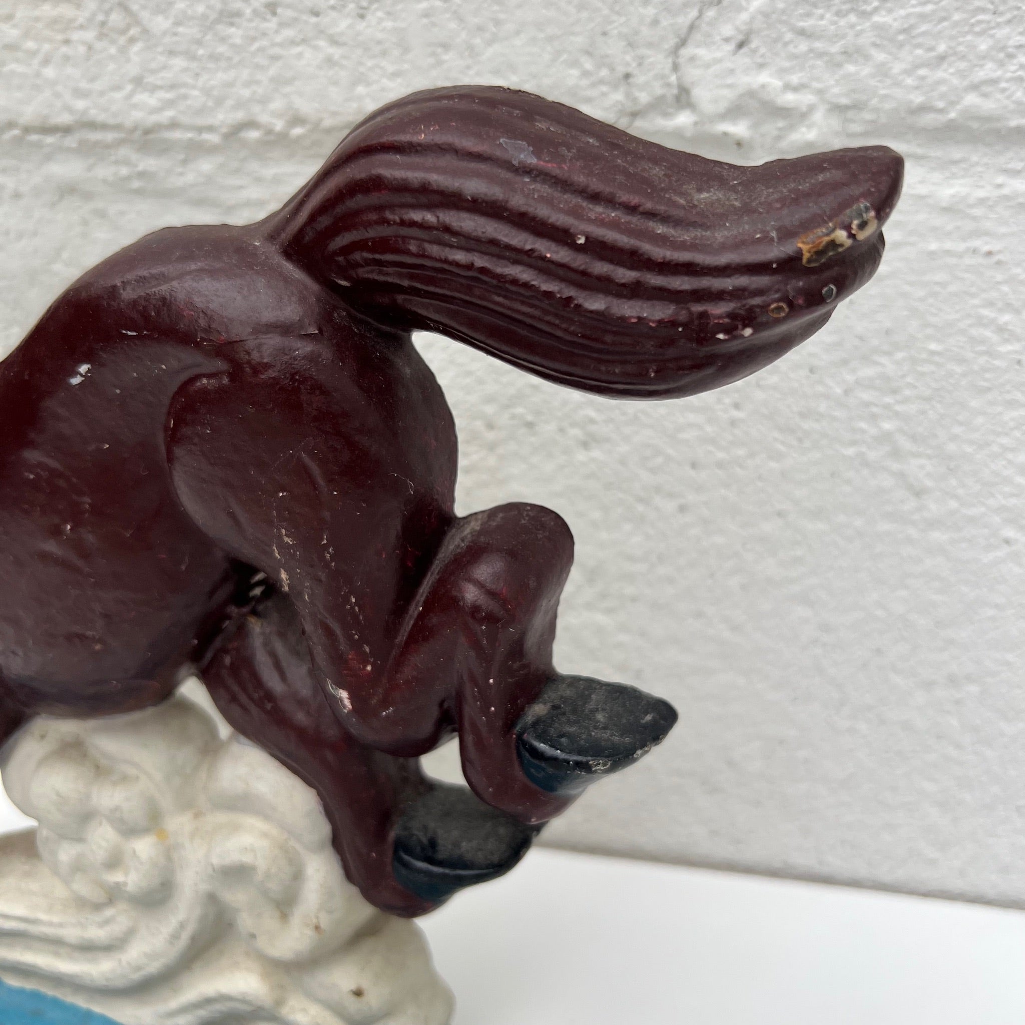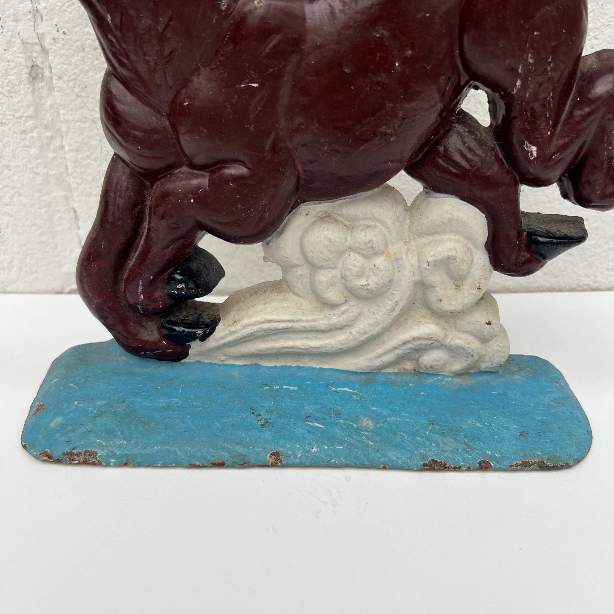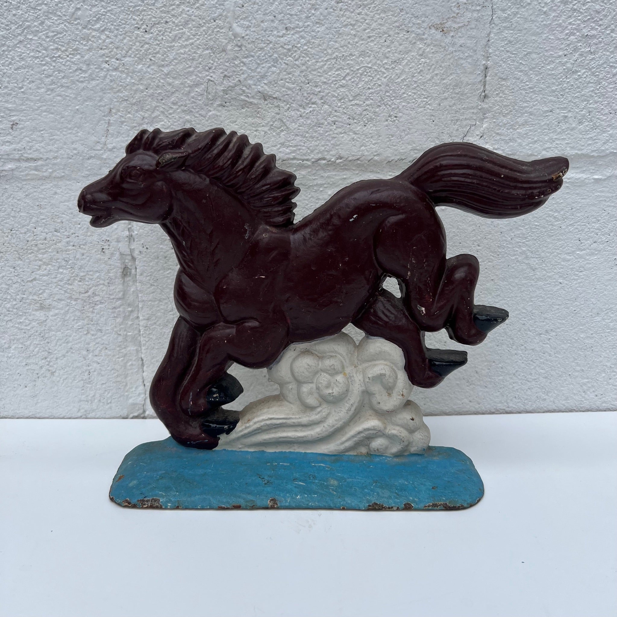 Here is a wonderful antique iron horse over clouds doorstop. The colors are still vibrant.