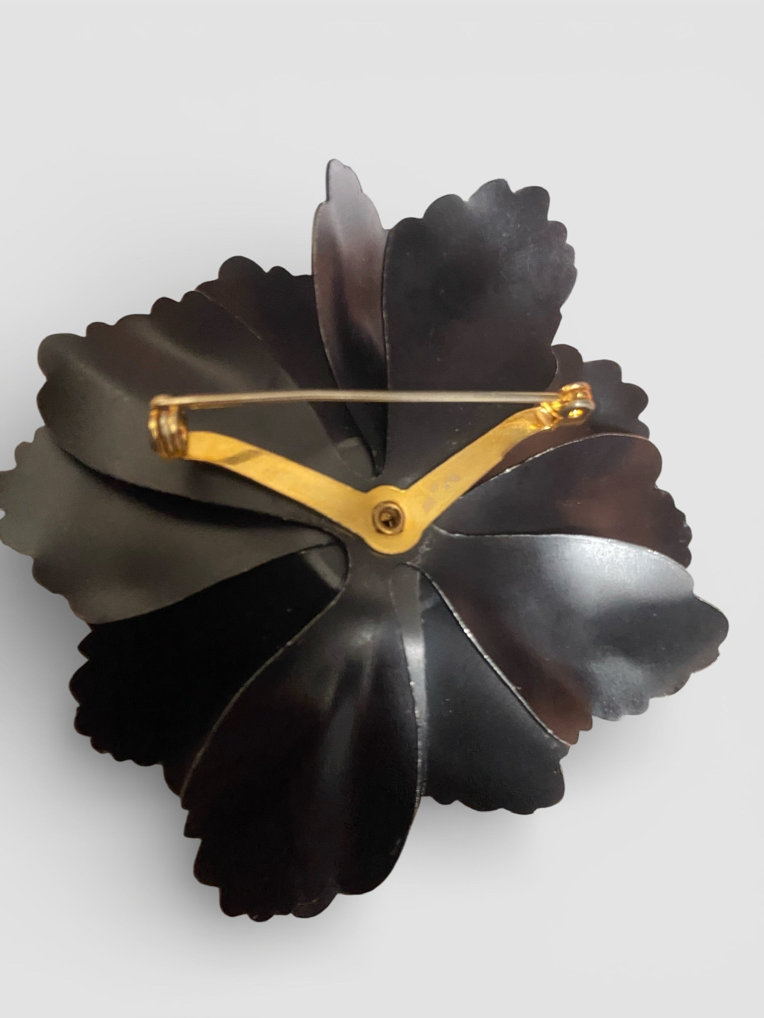 1950s' Large BOLD Black painted Metal + Rhinestone Mid Century Statement Flower Brooch. Please see all the pictures for vintage condition of surface scratches that are only visible in close up photography, but sturdy and in good condition!