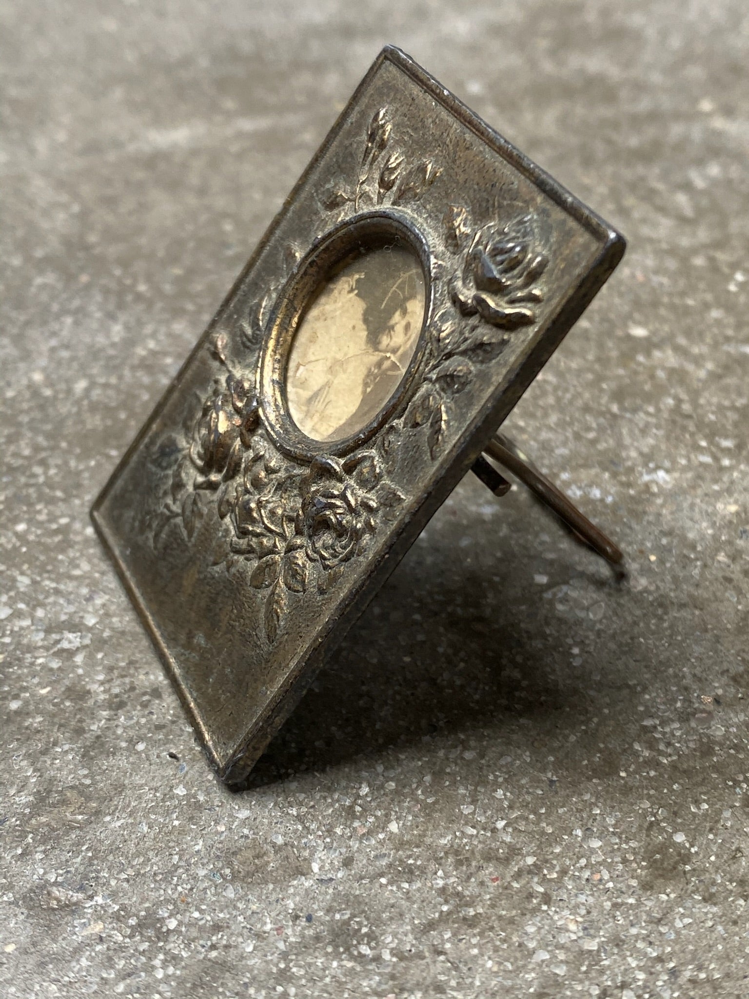 MINIATURE 1890's French Art Nouveau Antique Brass Picture frame w/ Repoussé Roses FREE SHIPPING