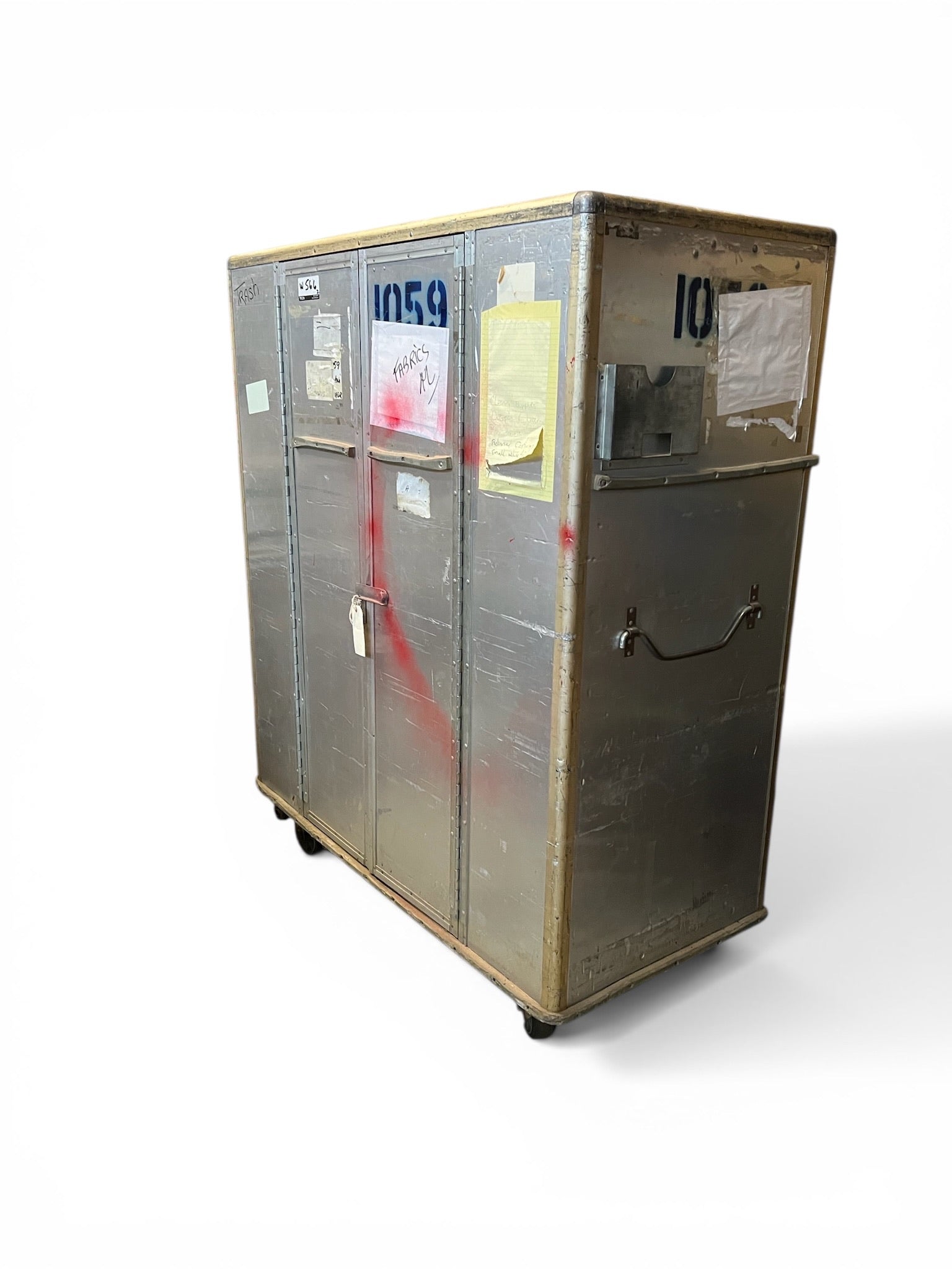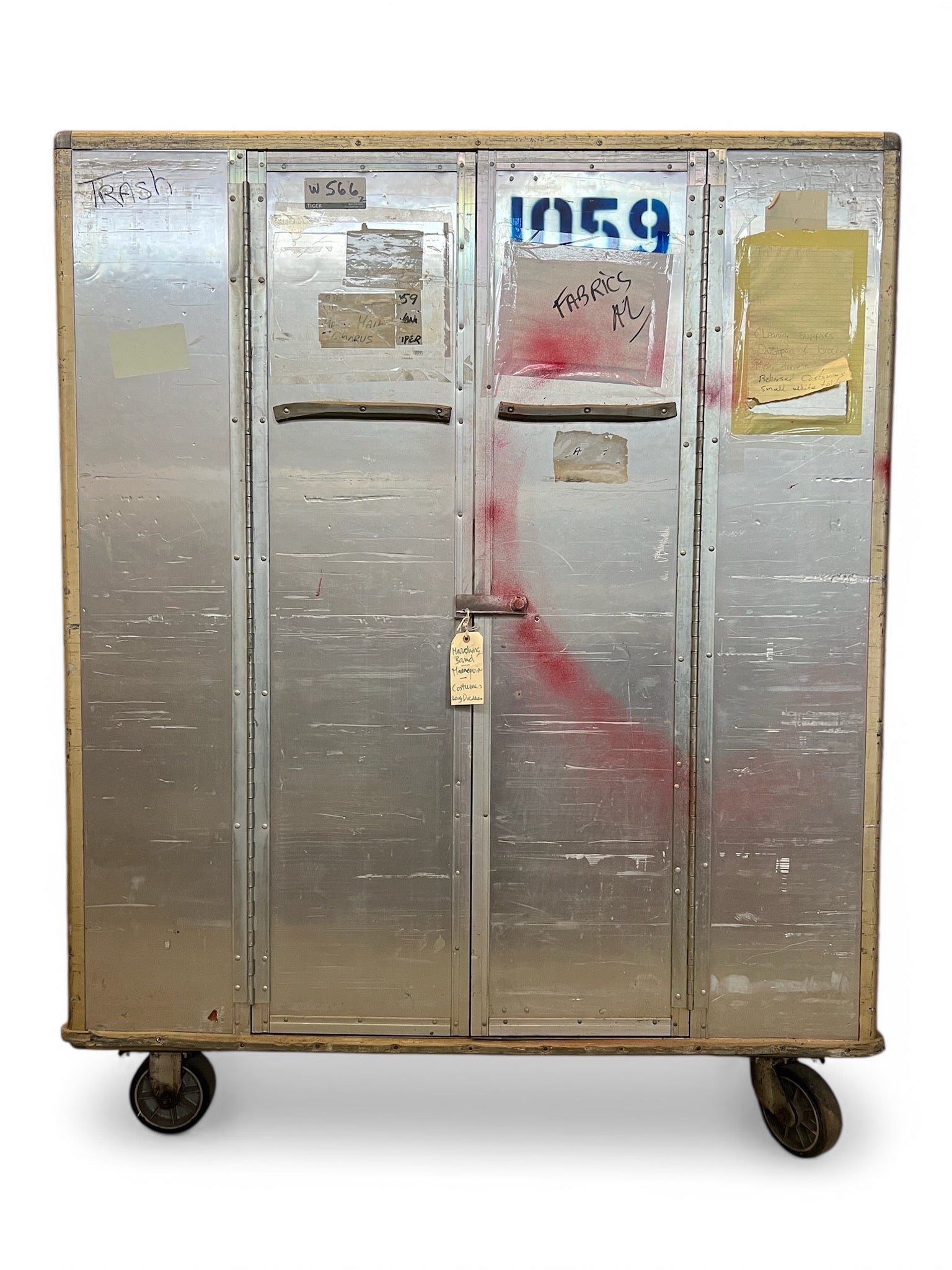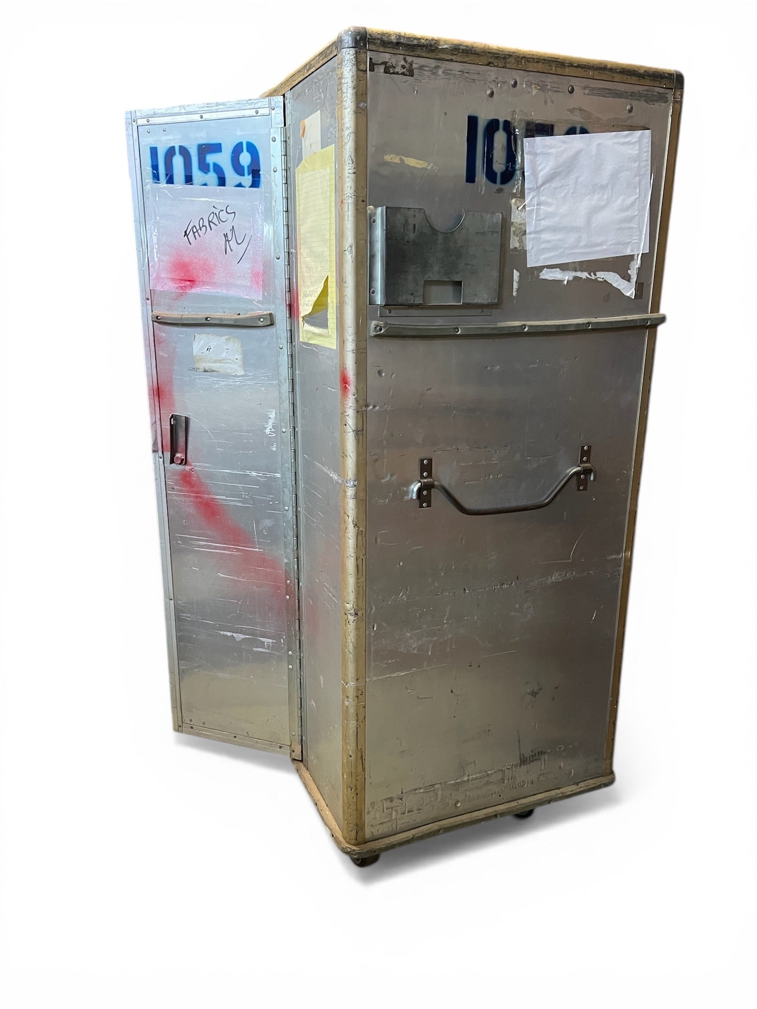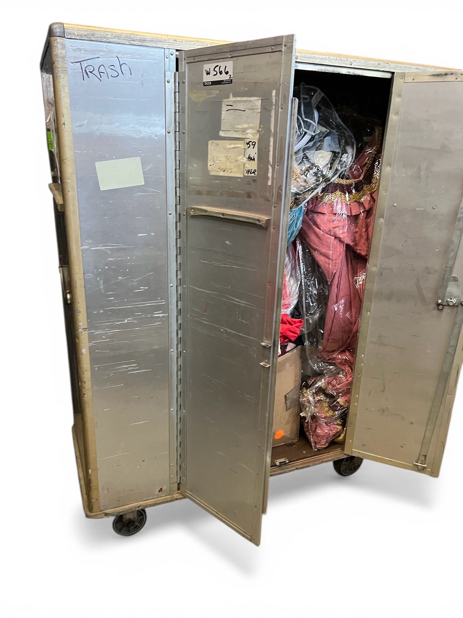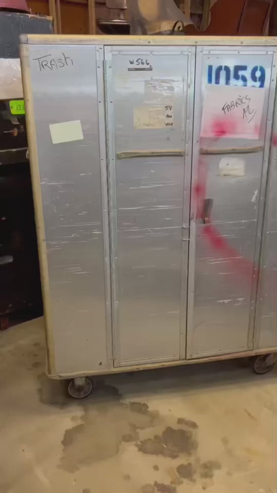 ONCE in a lifetime opportunity to own something from the official NYC Opera. We bought these from their huge auction they had many years ago around 2012 when they filed bankruptcy, and they sold everything. They had two warehouses larger than Costco full of props and costumes. These were used to transport costumes. They have doors on the side. There is a pole inside to hang clothes but you can customize it. They are made of non rusting metal (tin?) and easy to move with large caster wheels. They are heavy. We also used them to store costumes and other things. We would love to keep them but we also need to move items out.