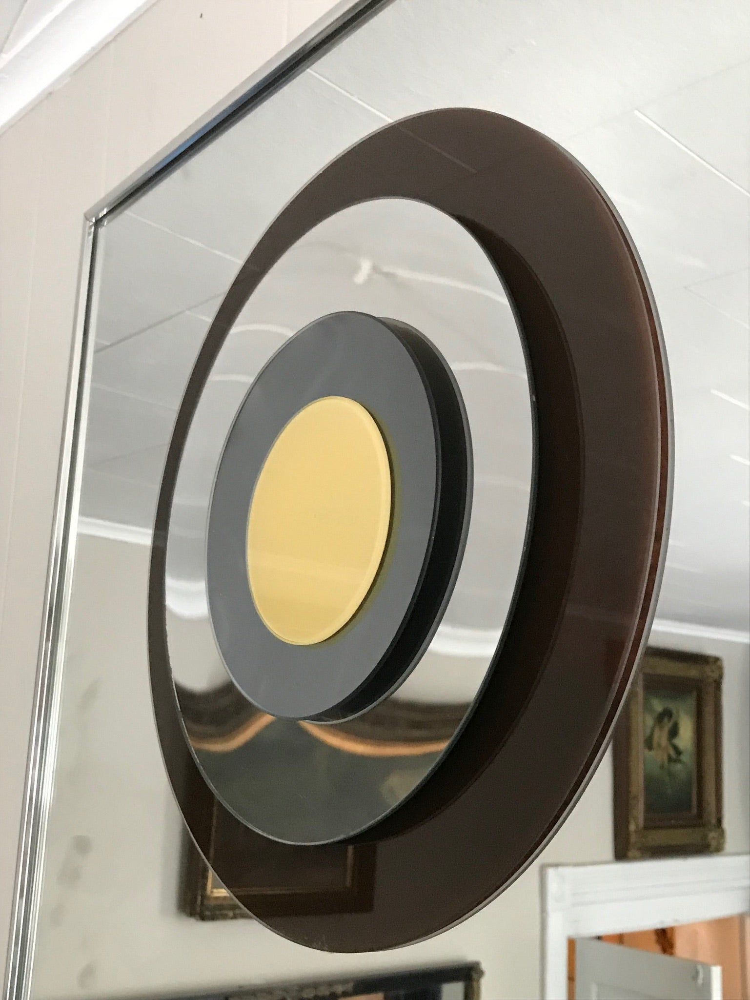 Vintage Mid Century Rare HAL BIENENFELD Op Art Mirror Bullseye, FREE Shipping